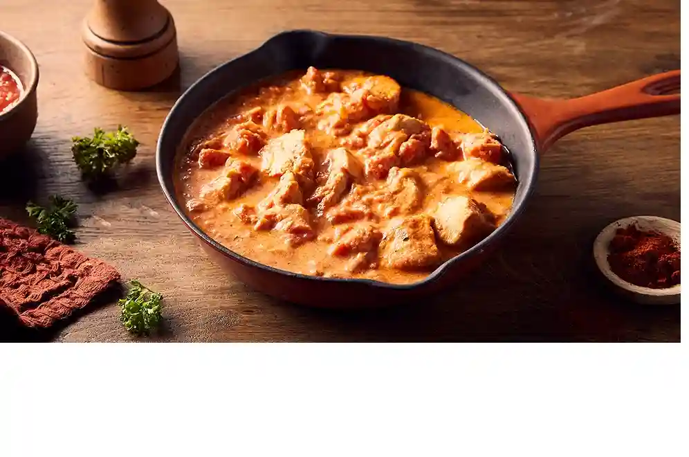 Poulet, Oignons, Poivrons, Ail, Paprika Fumé, Creme, sel et poivre